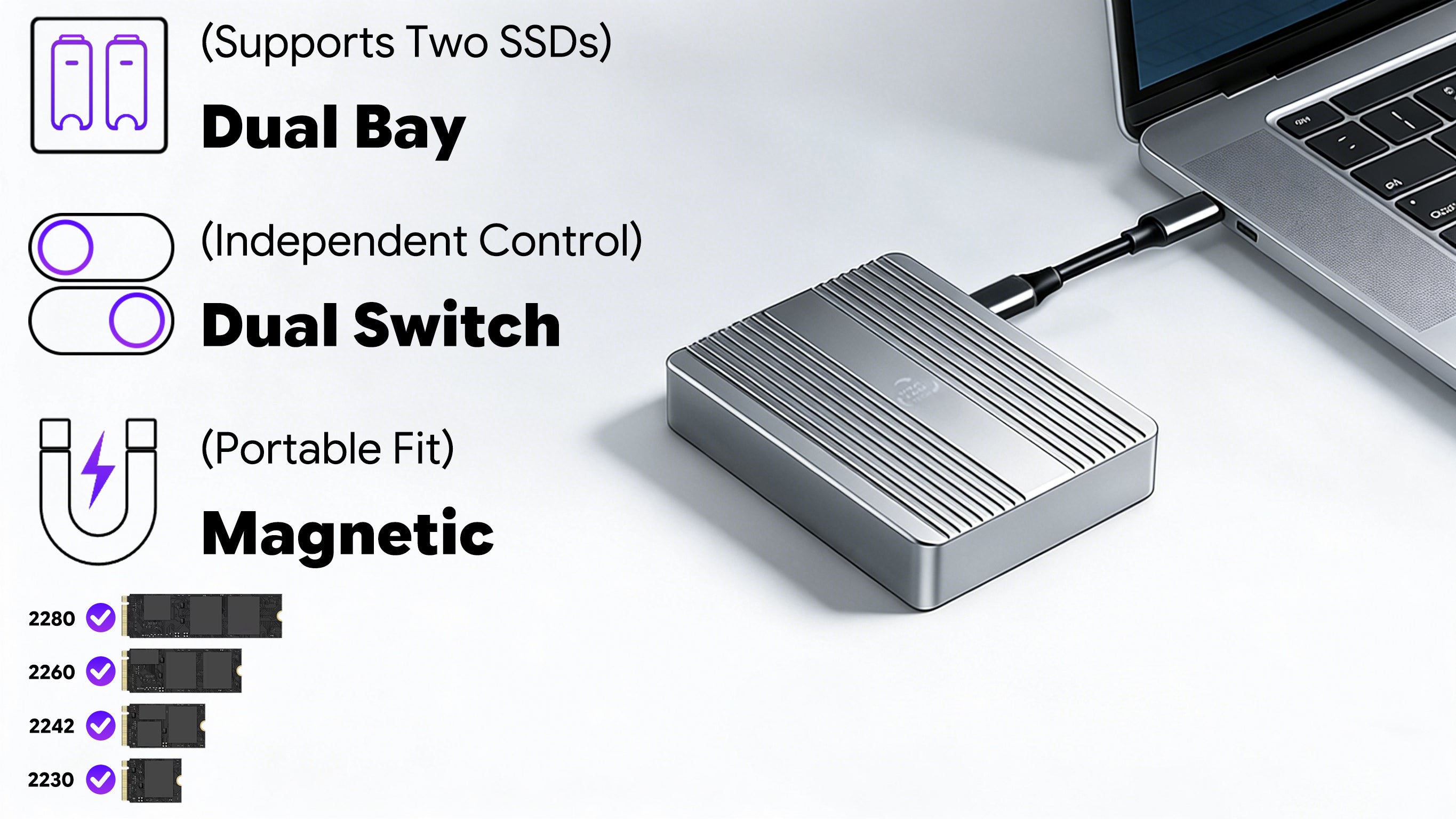 - You juggle two separate SSD enclosures and multiple cables